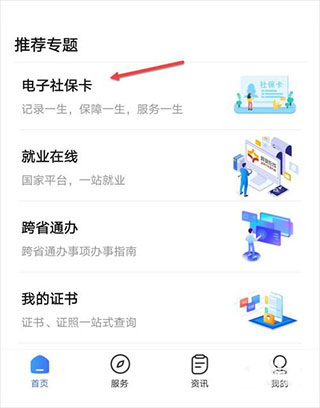 1、下载安装应用程序,登录账号,然后选择“电子社保卡”;