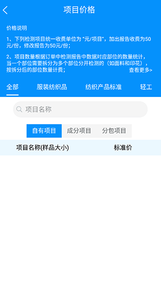 1、打开软件,找到并点击“我的”,然后再找到并点击“项目价格”;