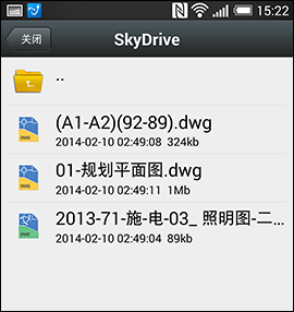 实现对微软SkyDrive的支持,可访问SkyDrive所有文档支持,可以将文件和图纸下载到本地。