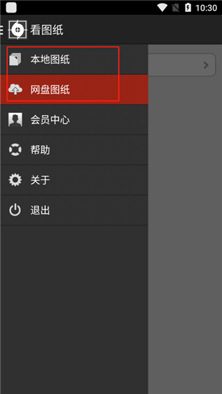 3、文件管理窗口包括“本地图纸”、“网盘图纸”、“会员中心”、“帮助”、“关于”和“退出”6个子菜单。