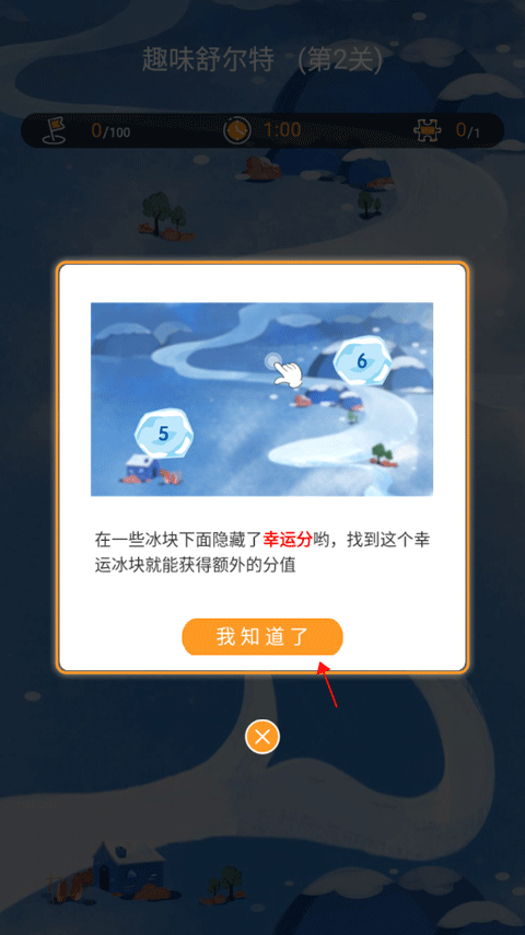 3、页面弹出了这项训练的基本玩法,就是按照从小到大的顺序来依次点击冰块,用时越少就表示注意力控制能力越强,点击“我知道了”关闭窗口。