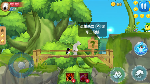 7、当我们碰上稍高一点的障碍,可以点击右下角的第二个按钮【进行跳跃】。