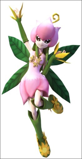 从绚烂盛开的花瓣中诞生的妖精型数码宝贝,拥有着与人类孩童相似的外表,然而实际上,花仙兽是蕴藏着深不可测力量的完全体数码宝贝。花仙兽的性格变化无常且活泼,据说会向那些性情与自己相仿的人类少女敞开心扉。此外,花仙兽也是个爱哭的小妖精,一旦泪水涌出,就会变得毫无抵抗之力,因此要驯服花仙兽需要极大的耐心和努力。尽管如此,花仙兽也有着温柔的一面,愿意向弱者伸出援手。花仙兽能够利用身后生长的四片叶状翅膀飞翔于蓝天之上,据说起飞时会吹起一阵清新宜人的微风。其必杀技为“花仙炮”,以手腕上的花瓣作为炮口,将双臂向前伸展,发射出能量弹进行攻击。