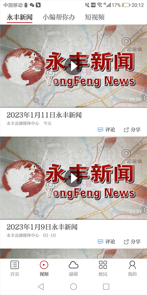 1、用户在打开今日永丰app,进入【视频】页面,里面有最新的和往期的永丰新闻