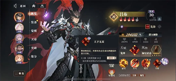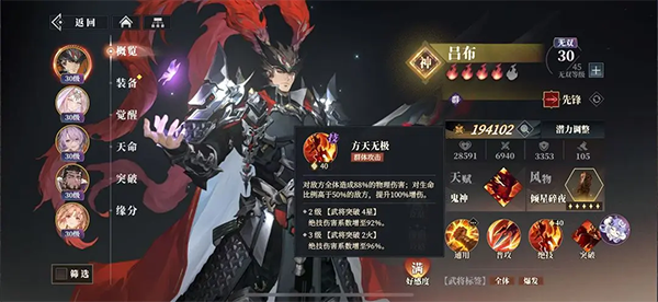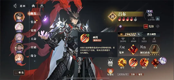 3、综上考虑,吕布的完美天命为“暴击率+防御穿透+吸血”。