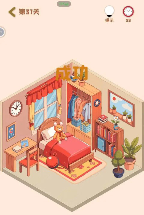 -玩家需要将一些小型家具和装饰品放在适当的位置,使房间看起来整洁有序。