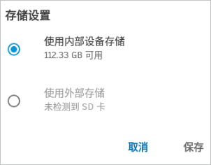 4、选择“使用内部设备存储”或“使用外部存储”。