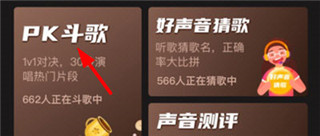 2、进入该页面后,找到【PK斗歌】功能,点击我们即可录歌开始PK了。