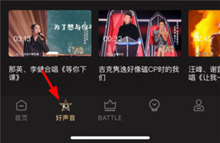 1、打开中国好声音app,点击屏幕正下方的【battle】功能按钮。