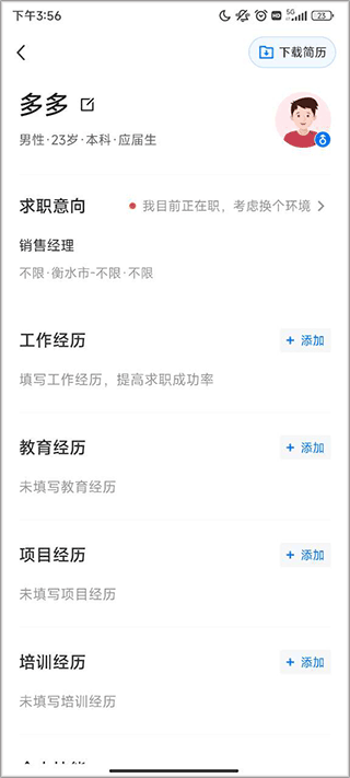 2、进入软件,编辑好个人简历。