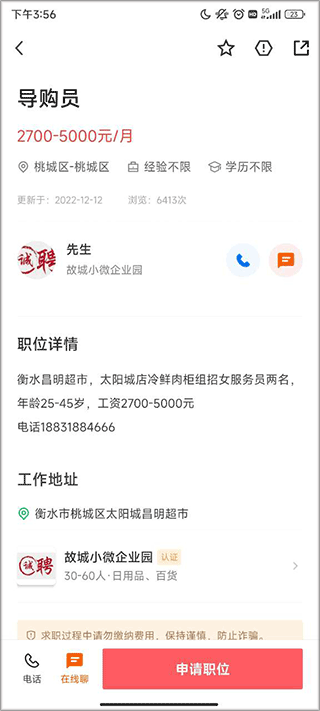 4、点击申请即可等待企业与你联系。