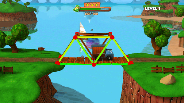 不过玩家还需要注意的是,你必须用最少的钱来搭建一个安全的桥梁才能获得满星,所以看似简单的游戏也是非常需要你的大脑来思考。除此之外也会有其他要素会前来考验玩家,让桥梁建设者模拟器游戏变得相当具挑战性,你能成为最佳桥梁建造师吗!试试吧!