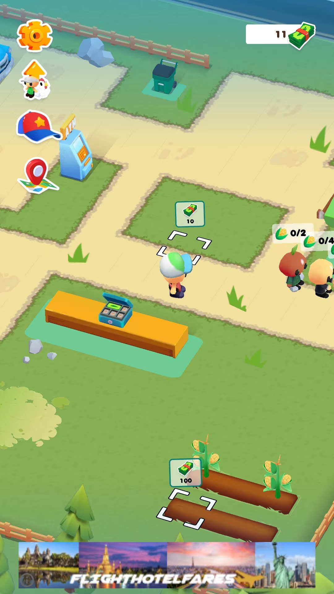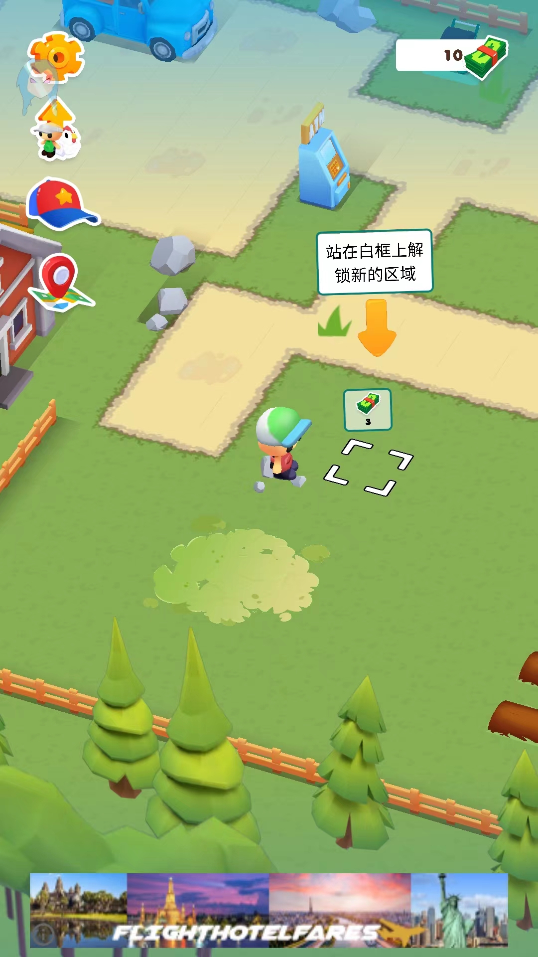 2、自由建造土地,收集金币以及解锁更多土地资源等;