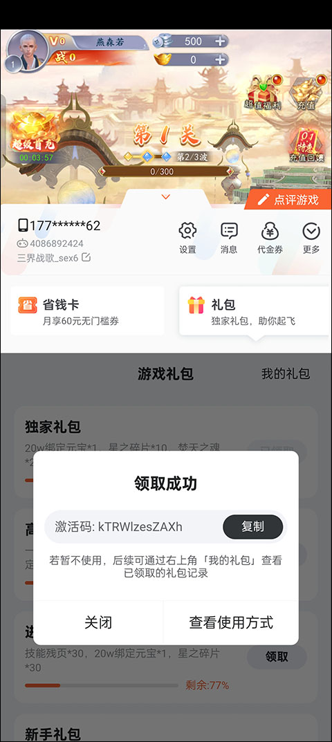 ps:另外在这里在附加上三个永久兑换码:SUS777、SUS888、SUS999