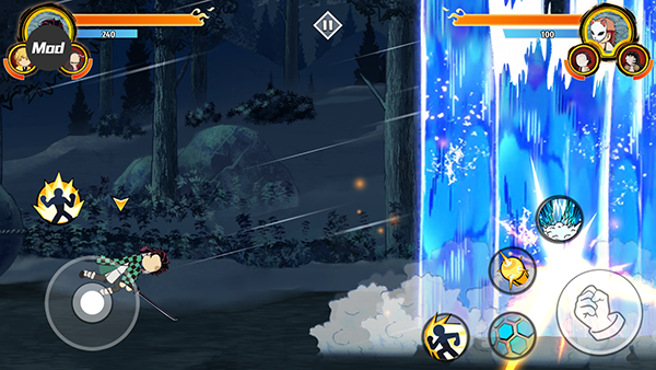 火柴人鬼灭之刃是采用热门动漫ip鬼灭之刃打造一款火柴人动作格斗游戏。在游戏内完美还原原作角色,无论是主角三小只中的炭治郎、猪猪、善逸,还是反派团中的无参、三哥等,且都以全新的火柴人形象呈现在玩家面前,其带来的强烈反差感反而能为玩家带来不一样的游戏体验。除此之外,在火柴人鬼灭之刃游戏中玩法也是比较简单的,玩家只需要通过普通攻击敌人或者蓄力回蓝开大招秒敌人,玩家可以根据自己的需求自由进行。