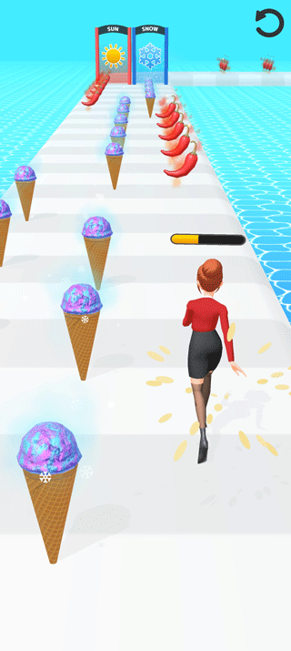 火焰女孩游戏是一款休闲娱乐手游,绝对能让你玩一整天,玩法非常简单,操作非常简单,只需要左右滑动屏幕即可完成操作,新手玩家也可很快驾驭。在游戏中你是一名女性角色,游戏开始后,需要左右滑动去获取辣椒,到底太阳门的时候你要选择太阳门,这样你的火辣程度就会提高,火辣程度越高衣服就越少吸引的男性就越多。但是当火辣椒和冰淇淋都出现在屏幕的时候需要选择火辣椒,这样你的火辣程度才会爆表,最终通过这个关卡。总体来说,这是一款非常有趣的游戏,能让你畅玩一整天,喜欢的玩家可以来本站下载体验一番。
