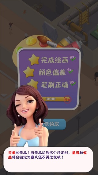 客人会在所有展出画作中挑选一幅购买,如果购买到特别满意的画作,除了有额外的收入外,还会增加展馆的人气值哦~