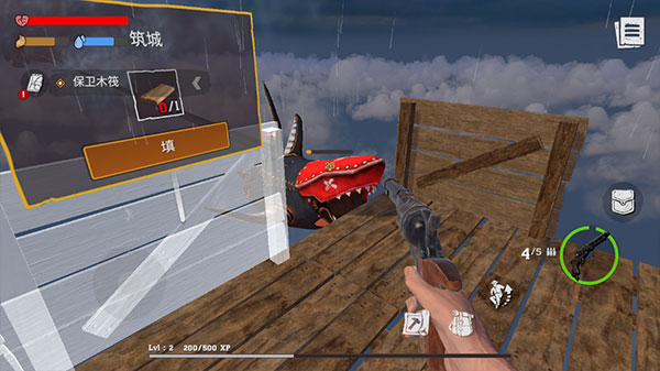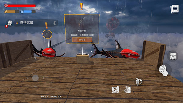 5、然后我们需要走下木筏去捡一些需要的材料,但是一定要注意时间,停留太久会引来怪物的追击。