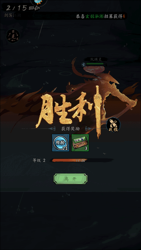 8、最终,战斗胜利了,玩家可以选择并点击“离开”的选项结束。