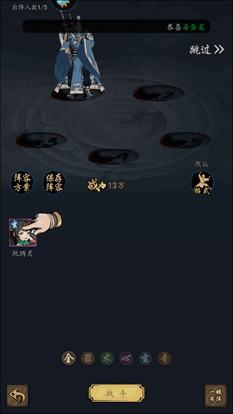 效果分为属性加成和技能效果两种类型:属性效果默认全部上阵门徒获得加成;技能效果将由掌门入场释放。