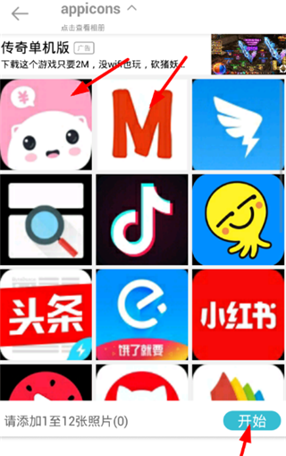 3、在页面中选择你要拼接的图片,点击“开始”选项。