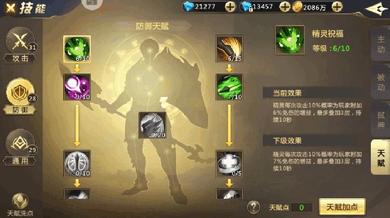 这种类型的玩家属于PK流派,天赋技能只加防御的技能,优点是PK非常棒,经常会逆袭对手,但是缺点是伤害不足,战斗力提升不明显。防御系的友友不再以通用为基础,而是以防御系界面天赋为基础。