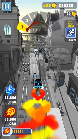 4、随机应变沉着应对,学会默数滑板的消失时间,以及优化跑酷路线(何时放开的捡道具、游戏币,何时选择安全路线为主)不要顾此失彼。