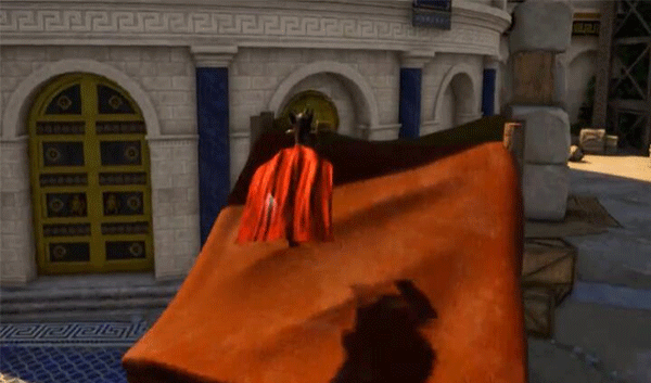 2、先借助前方的摊位,去到面前建筑的顶上;