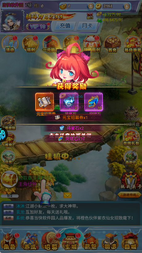 1、新手玩家一进入游戏就可以领取丰厚的登录奖励以及橙色武将。