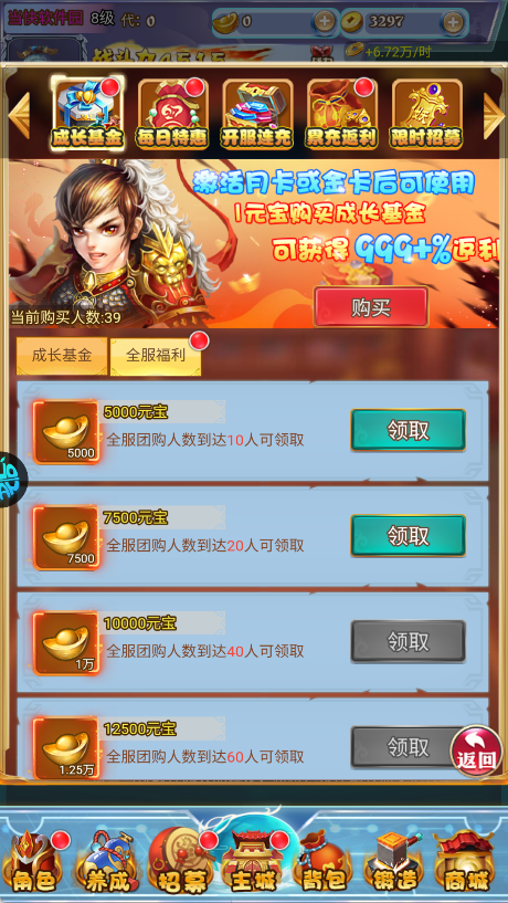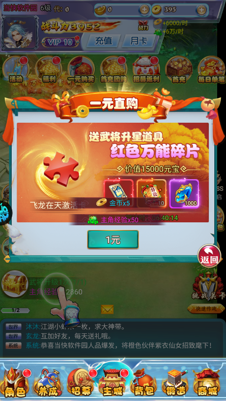 2、游戏支持超低折扣首充,建议1元起步领强力橙将和养成资源。前7天送十连抽与VIP礼包,新手快速起号不卡关。
