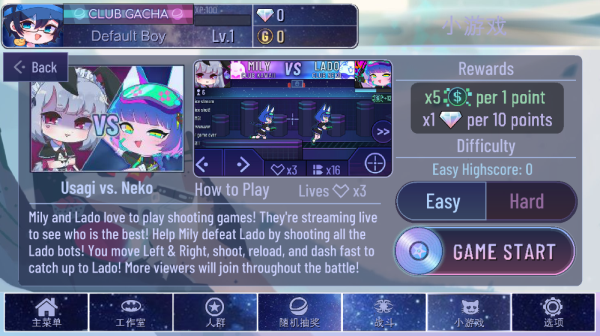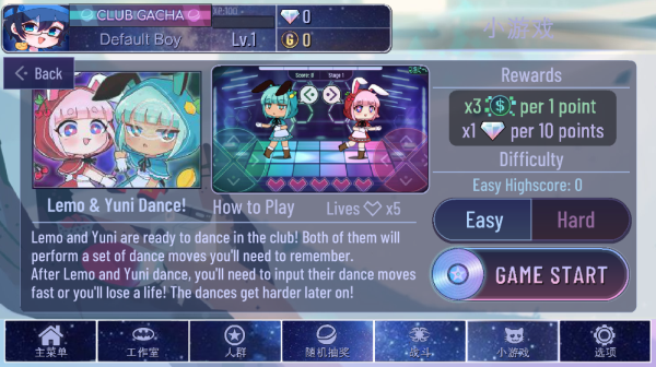 Easy难度下每1分可获得2倍Bits,每20分可获得一个Gems;Hard难度下每1分可获得1倍Bits,每20分可获得一个Gems。