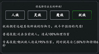 人族:中后期选手,前期会比较弱势。当有一定装备后,人族在挑战boss,有独特妙处。种族技能为沉默效果,谁用谁知道,特别中后期,大部分挑战都在比拼谁能更高效的进行技能释放。