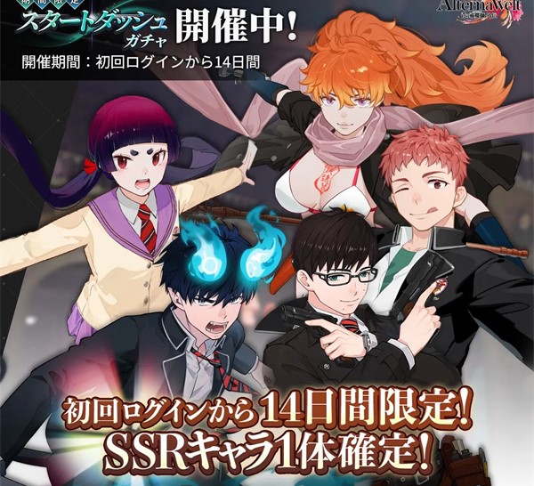 为纪念《AlternaWelt -青之驱魔师 外传-》正式开服,游戏内将限时举办以下活动。