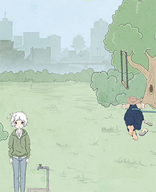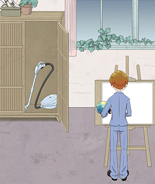 木板放在画家脚下,然后使用吸尘器将乌云吸掉。
