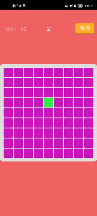1、游戏很简单,就是找到不同颜色的一个正方形,点击它就会加大难度,最多可以变成横排7个,竖排7个。