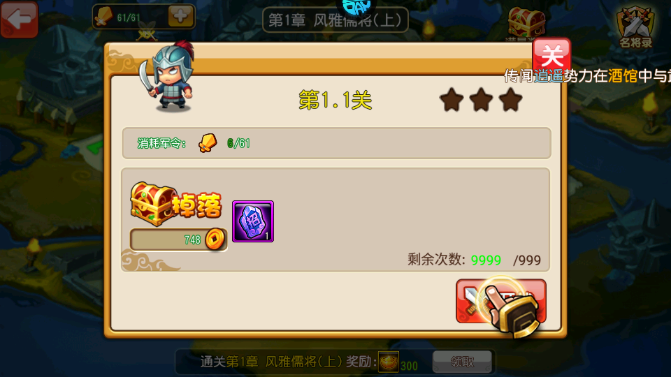 1、选择关卡,点击开战,三星通关后还可以获得各种奖励;