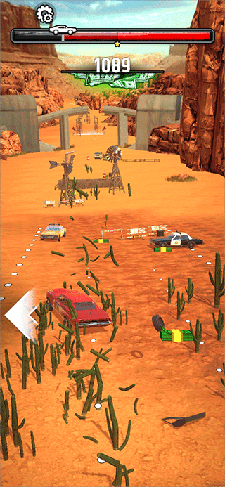 而在冲刺撞车手游中玩家将通过简单直观的控制,选择你的路径来驾驶你的肌肉车,并通过路障、封锁和大量易碎的障碍进行粉碎、撞击和猛击,以大胆逃脱!并且还能从你创造的大屠杀中赚取现金,升级你的汽车以提高生存能力并完成每个越来越疯狂的阶段!