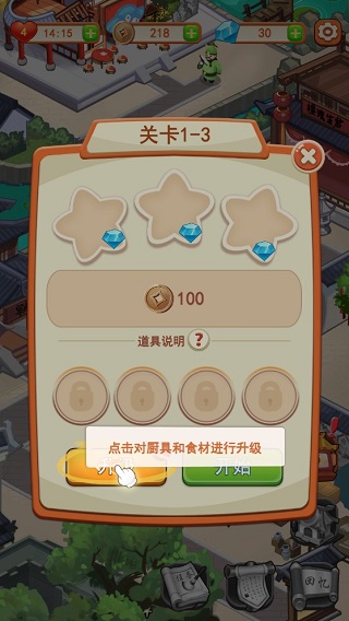 想要缩减制作效率,必须要有“金刚钻”,所以这里玩家可以点击这里,对厨具和食材进行升级。