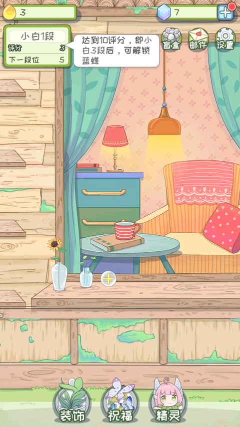 代号蝶是一款趣味十足的经营养成手游,采用了卡通二次元的风格设计,拥有精致细腻的游戏画面,趣味的游戏玩法,再搭配上温暖动人的音乐,可以给玩家带来一种非常治愈的游戏体验。游戏开始于森林被摧毁后的傍晚开始,你正浇着花,窗台突然飞来了数只色彩各异的蝴蝶,从此之后,你的日常多了照料这群漂亮的蝴蝶这一项。