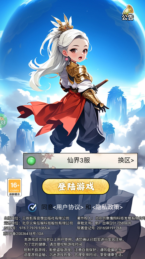 1、打开碧雪情天3D手游,注册账号登录,点击登录开始游戏;