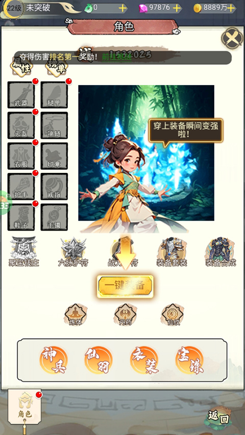 3、开局福利:钻石*88888,SSR神兵-十方俱灭!