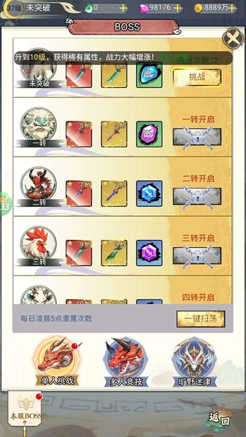 2.【战斗流畅,自由组合阵容逆转攻速!】4大核心阵营供你选择,千款武学技艺搭配策略,轻松应对战场风云瞬息变化!5个属性,8项攻击力提升、3次防御能力提升...更多精彩内容等您解锁!6人团竞技场,跨区激斗PK排位赛......热血激情再现史诗级多人PVP!7万字世界地图随意探索,千万英雄助梦入世!2亿金币送不停!