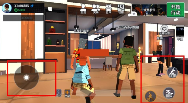 3、界面两侧的按钮来控制操作角色;