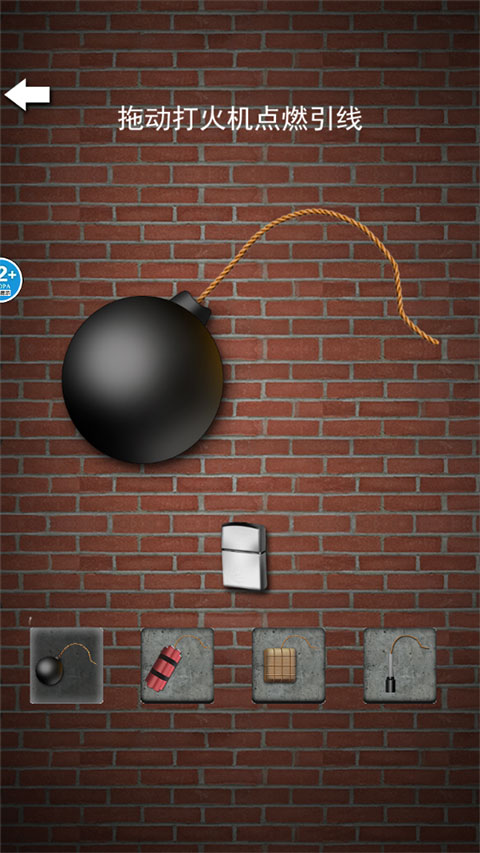 2、引爆炸弹只需要拖动打火机点燃引线即可。