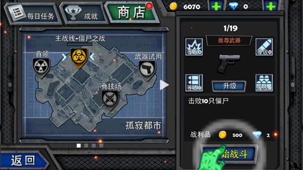 3、众多的关卡等你来挑战,还有不同种类的丧尸等你来消灭。带你体验杀丧尸的快感。