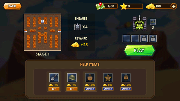 在坦克1990中,你将享受到无限制的游戏乐趣,它包含了充足的场景和关卡等待你的探索,你将在跌荡起伏的故事剧情中展开冒险,去击败所有敌方坦克。