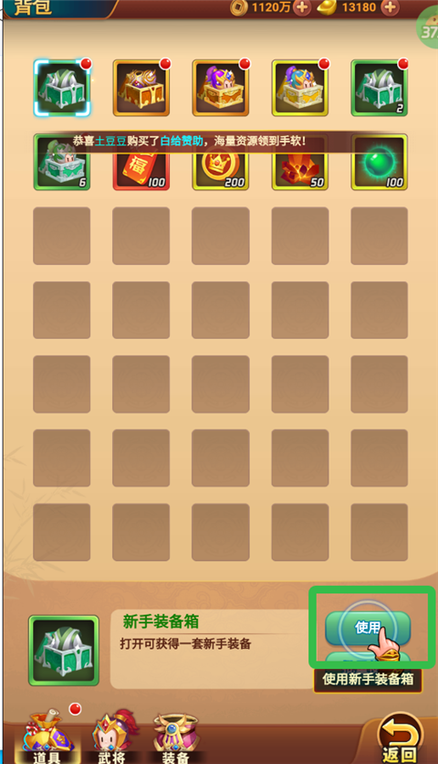 5、打开武将界面,点击一键装备,给各武将提升战力。