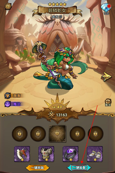 2、通过1-10关卡后可以激活装备系统,玩家可以给英雄穿戴装备,大幅增加属性战力。