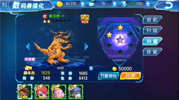 提升数码兽星级需要用到数码兽碎片,而数码兽碎片的作用是解锁数码兽及数码兽升星,当数码兽强化到一定等级后级可以进行升星。