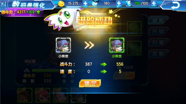 数码兽可以通过升星来提升自身属性及战斗力。进化程度高低是由数码兽的星级作为标志的。每进化一次,数码兽都可以获得1颗星星。星星越多,数码兽各个方面属性成长数值越高。